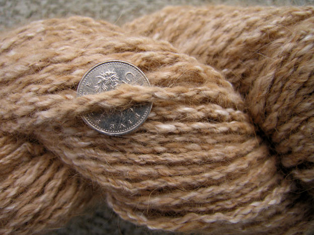 This is a curiosity, a Christmas gift spun for a friend It’s 50% undercoat from her semi-longhair cat, 30% merino and 20% silk. A cabled 4-ply, my first serious exercise in yarn engineering. Cat is soft but completely lacks elasticity (hence the merino) and is completely dull (hence the silk). Cabled 4-ply to reduce shedding of shorter hairs.