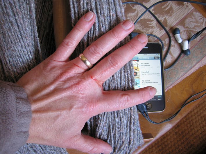 and most of it is still here. It’s COLD. I need a sweater, I’m in a KAL with Lynn – and due to my greed at SOAR, I have a duff right elbow that’s restricting me to about 15 minutes knitting at a stretch. It’s getting better, though. Slowly. I wonder if the realisation that I’m healing more slowly, aching more often, is one of the reasons that I feel so strongly my time is running short, that I have to get everything I want from Life sooner rather than later? This is the only Monday 21 December 2009 that you and I will ever have, Dear Reader. Let’s put it to good use. I am going to do a solid hour of work, and then I am going outside to glory in the myriad shades of blue created by snow and sky.