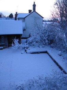 The window is blinding white because we’ve got snow. Quite a lot of snow, in fact. We woke up on Friday morning to this