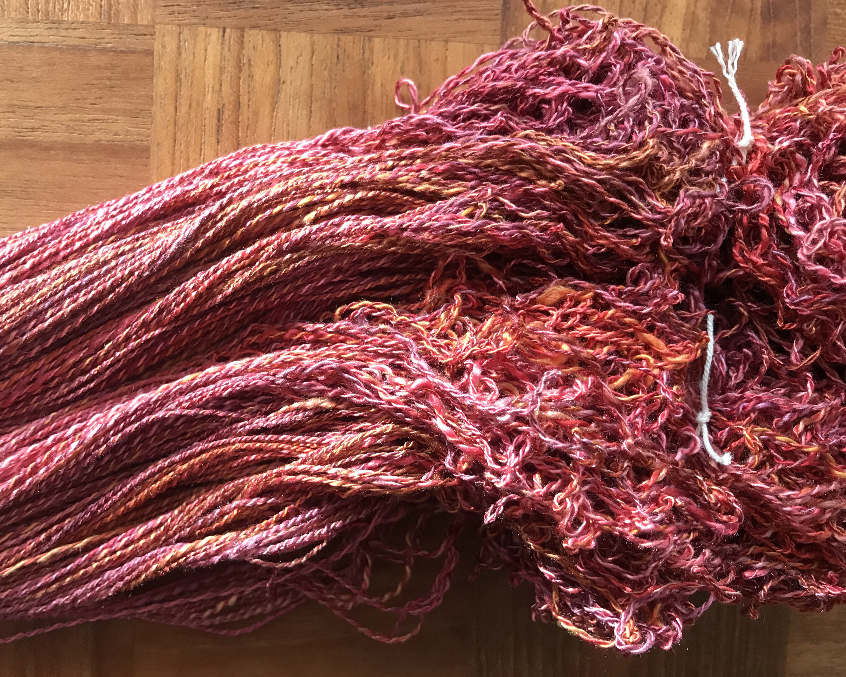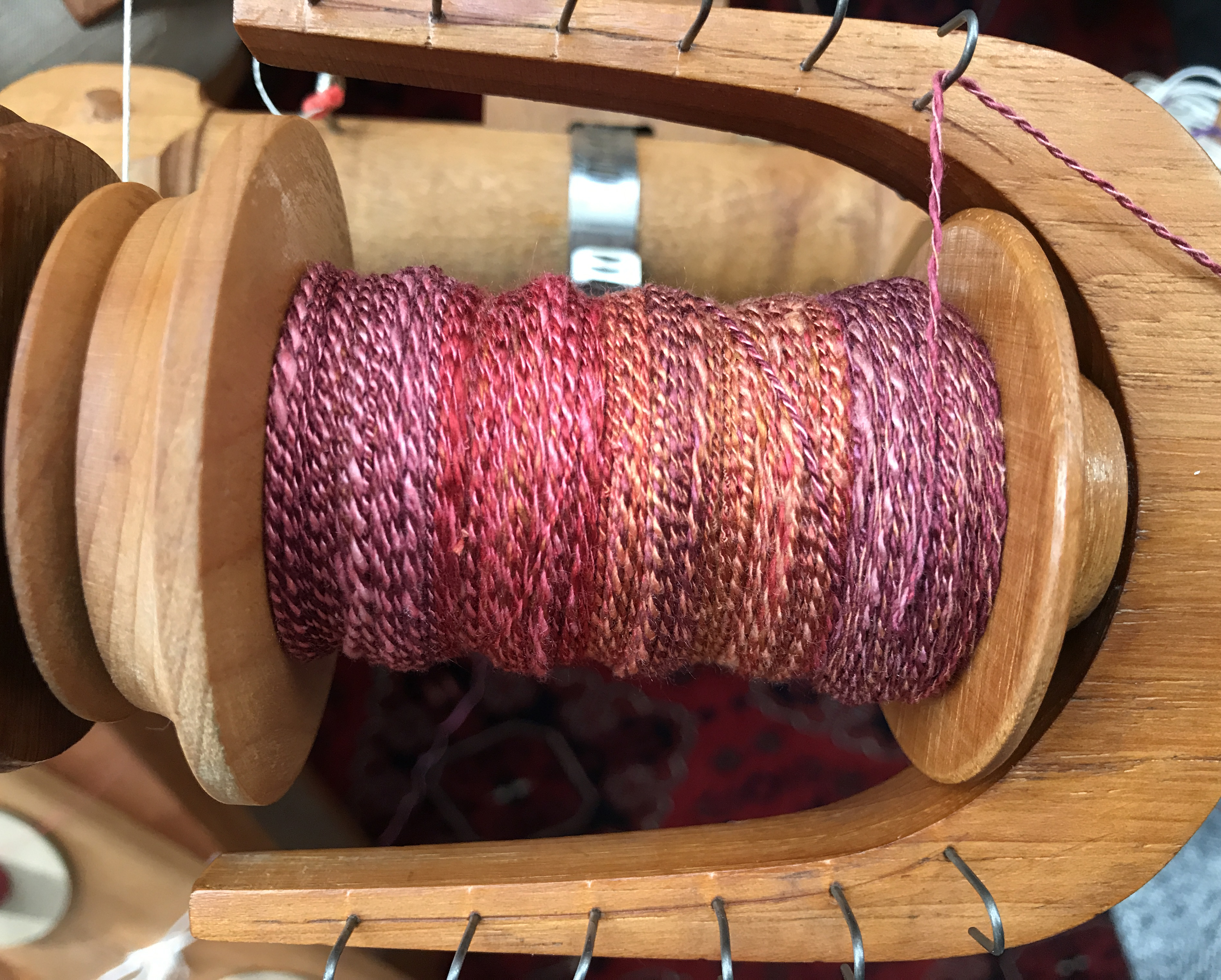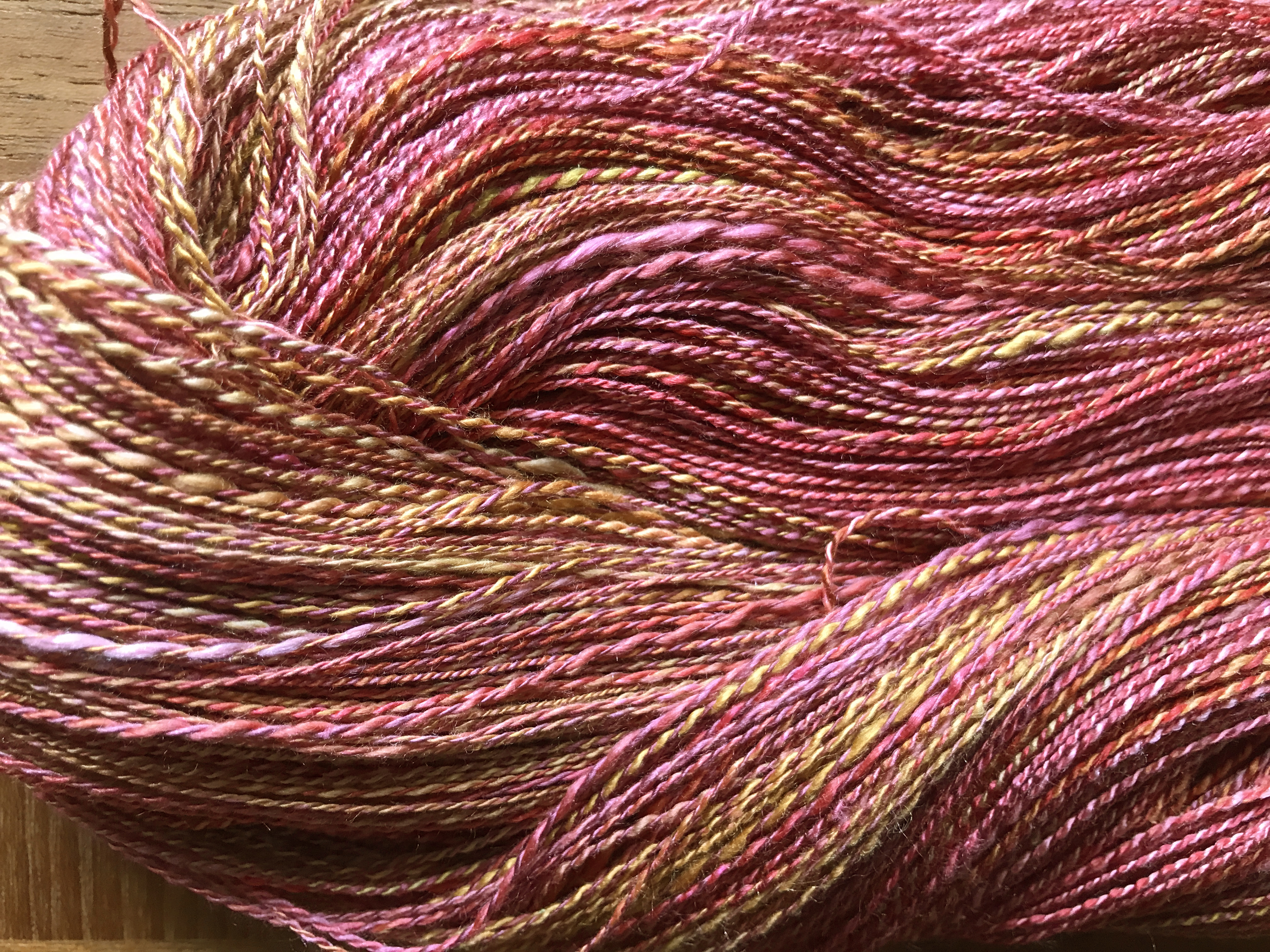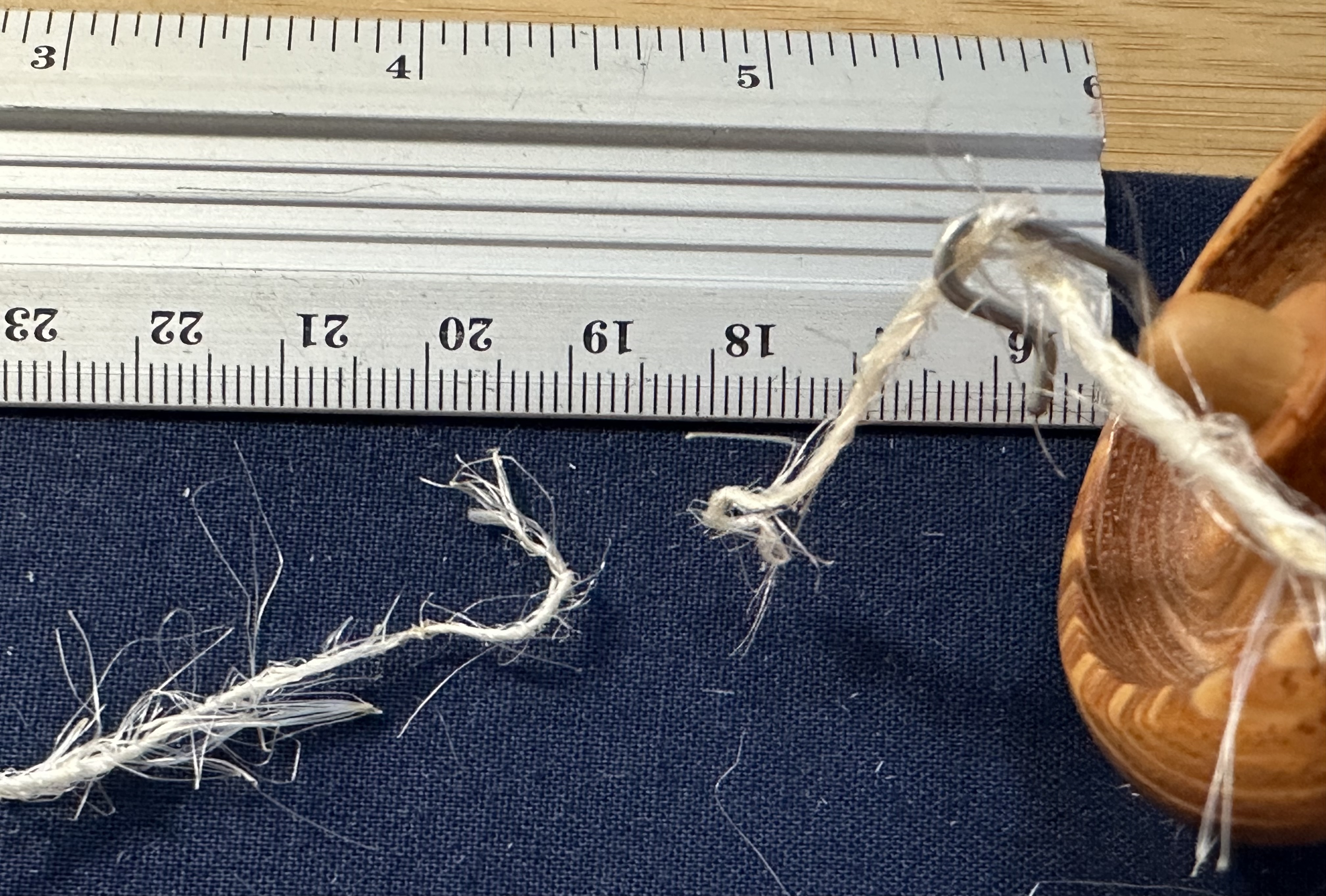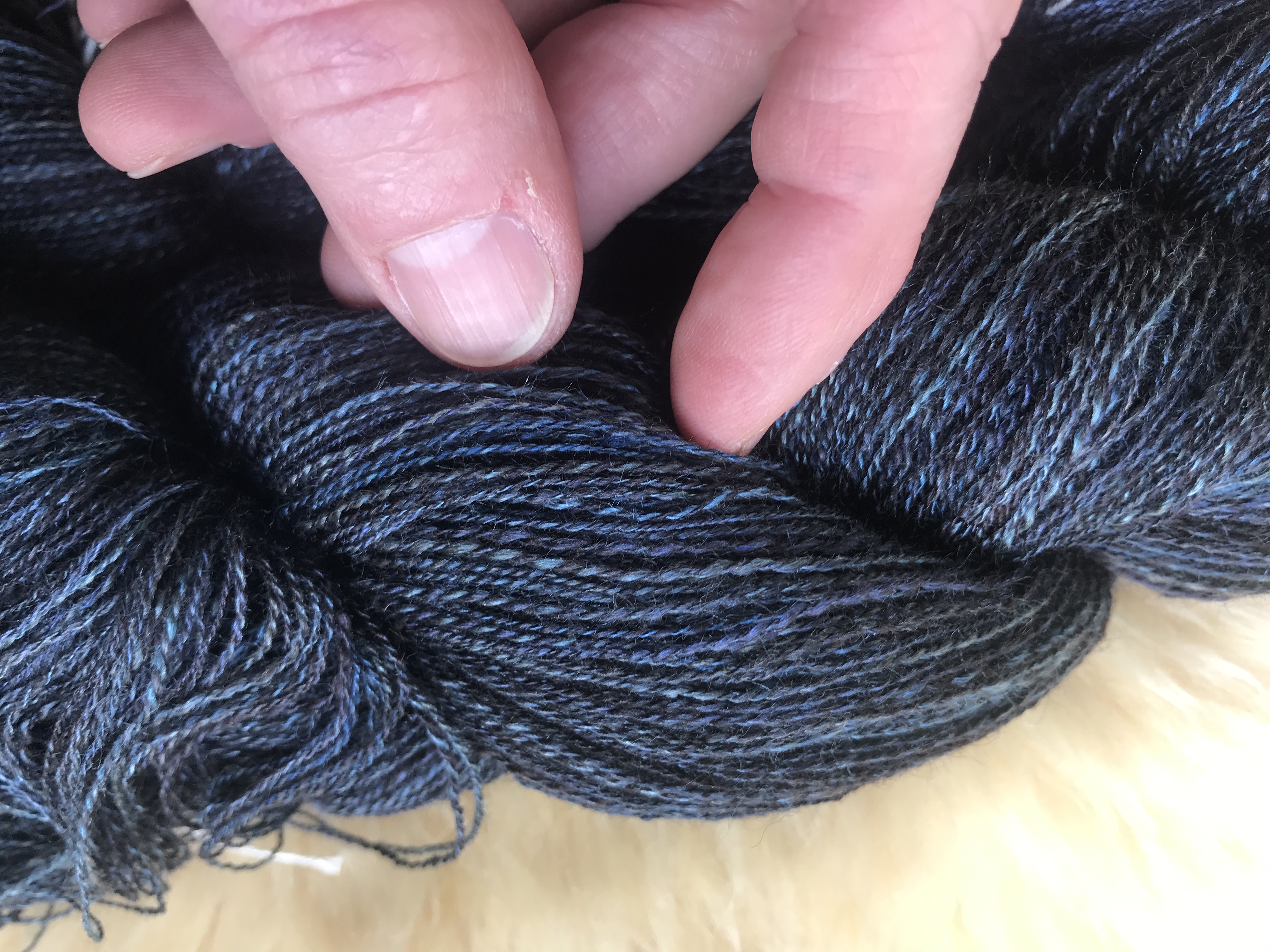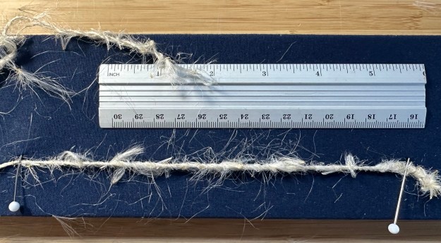 ‘Almost’ competent 2-ply yarn held between the pins. I can imagine it as candlewick, when the first wax dip would glue the fibres together. But how well would it work? Would it burn?