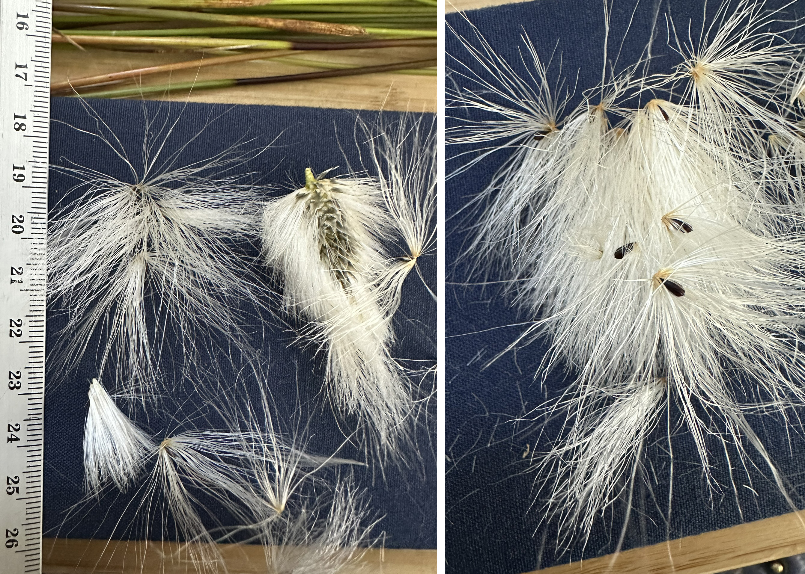Above, dissections of the cotton grass seed heads.