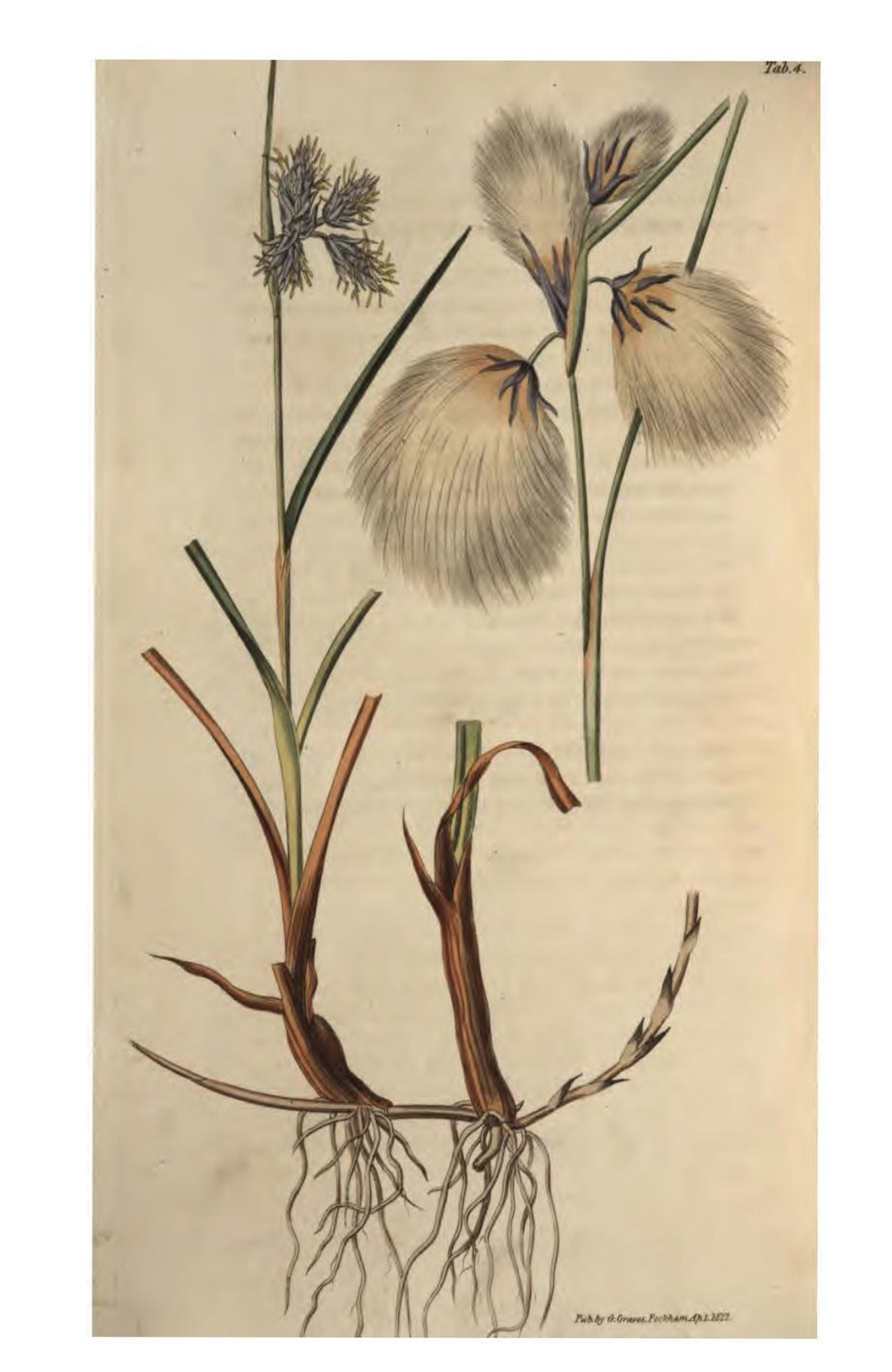 ‘Should our Manufacturers be able to overcome the brittle texture of its cottony heads, this plant might then answer the purpose of the grower, as the quantity of this substance is considerable. In some parts of Germany the down has been made into paper, wicks for candles, etc.; and Linneas [Carl Linnaeus aka Carl von Linné, 1707–1778, the Swedish biologist who was “the father of modern taxonomy”‘] remarks, that the Swedish peasants stuff their pillows with it in the place of feathers. This plant is of common occurrence in most of the boggy parts of Great Britain; it flowers in April and produces its downy seeds in July and August.’