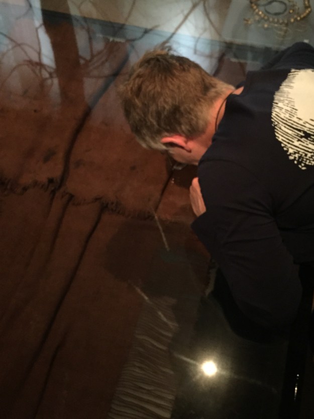 In fact it was this image that spurred me to start stitching this needlebook. I couldn’t capture the delicacy and subtle shades of colour refracting from the stone, but I’m reasonably pleased with what I accomplished, given my level of skill. It’s worked on a piece of indigo cotton fabric used for Japanese martial arts clothing, edged with true buttonhole stitch in DMC cotton floss dyed in my ferrous sulphate indigo vat.