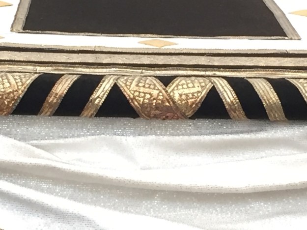 The broad piece of turquoise silk on the spine is from a pack of remnant silk fabrics that arrived out of the blue one day (see what I did there?), a random gift from Lynn.