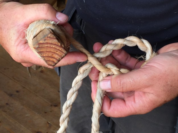 Lynn sews, sometimes by hand. A needlebook might be useful as well as a decorative, tangible expression of my friendship. Lynn likes blue, she’s a hand spinner and weaver, so handspun and handwoven would be appropriate. I sorted through some of my most precious vintage Japanese textiles. We first met In Real Life at SOAR in Stephenie Gaustad’s handspinning cotton class (where I fell deeply and irrevocably in love with one of Alden Amos’ banjo charkas, but that’s another story best left untold), so there should be some of my own handspun cotton sashiko thread as well as handspun silk. Lynn’s an ecologist and natural historian, so the ammonite section button seemed perfect. I like skulls – and they’re a reminder of where we fragile beings come from and will end up – so bone skull beads on the handspun silk fingerloop braid closure.