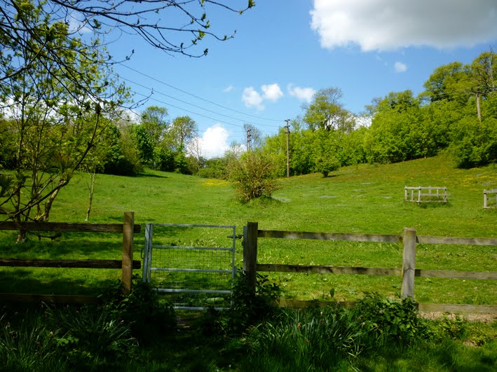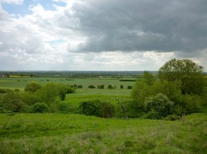 It doesn’t photograph at all well, but fortunately someone’s built a fence to show the undulations of the ridge and furrow of medieval arable preserved beneath this pasture. It’s a feature of medieval farming in this area, and farmers created it on purpose by ploughing their strips of land in the same direction year after year, with the plough shifting a little more soil from the hollow up toward the ridge every year. No one today is certain why this was done, but the usual theory is that it improved drainage on heavy soils: water ran down the ridges into the hollows.
