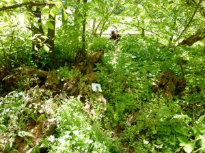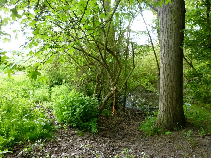 Today it’s just a footpath, but there are indications that it was once a more important route. It’s difficult to see in the photo, but the path is at least 18″ lower than the ground to either side, worn down by traffic over many years. I’d hoped for significant old trees on the banks beside it, or signs of traditional managment such as multi-stemmed trees growing from old coppice stools, but judging by the dense growth of young elms, the old trees may well have been elms that died of Dutch Elm Disease many years ago.