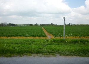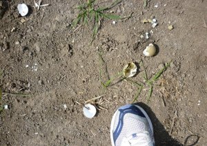 And then a mystery to occupy my mind for the rest of the walk (instead of fretting about how my feet were hitting the ground): there’s my watch on the ground in the middle of a field of field peas, next to something white.