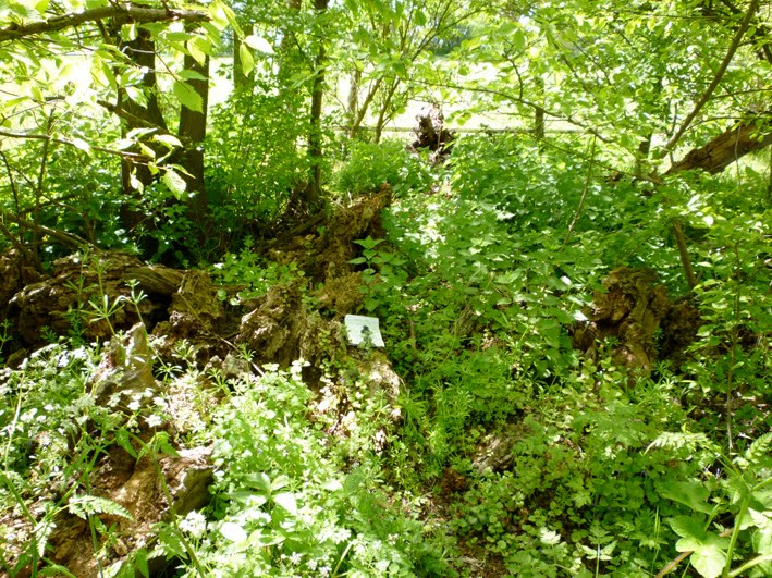 Here is what may be the remains of one giant, slowly returning to soil beside the path. My watch is sitting on the map to give some sense of scale.