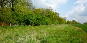 One of those two moats stood inside the ditched enclosure marked by trees in that photo. It’s also possible to see the height of the field surface compared to the track of Croydon Lane.