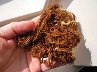 Well, not quite everything. That pinkish-brown skein of silk is just as magical, or even more. Remember I told you to save the leaves strained from the initial solution?
