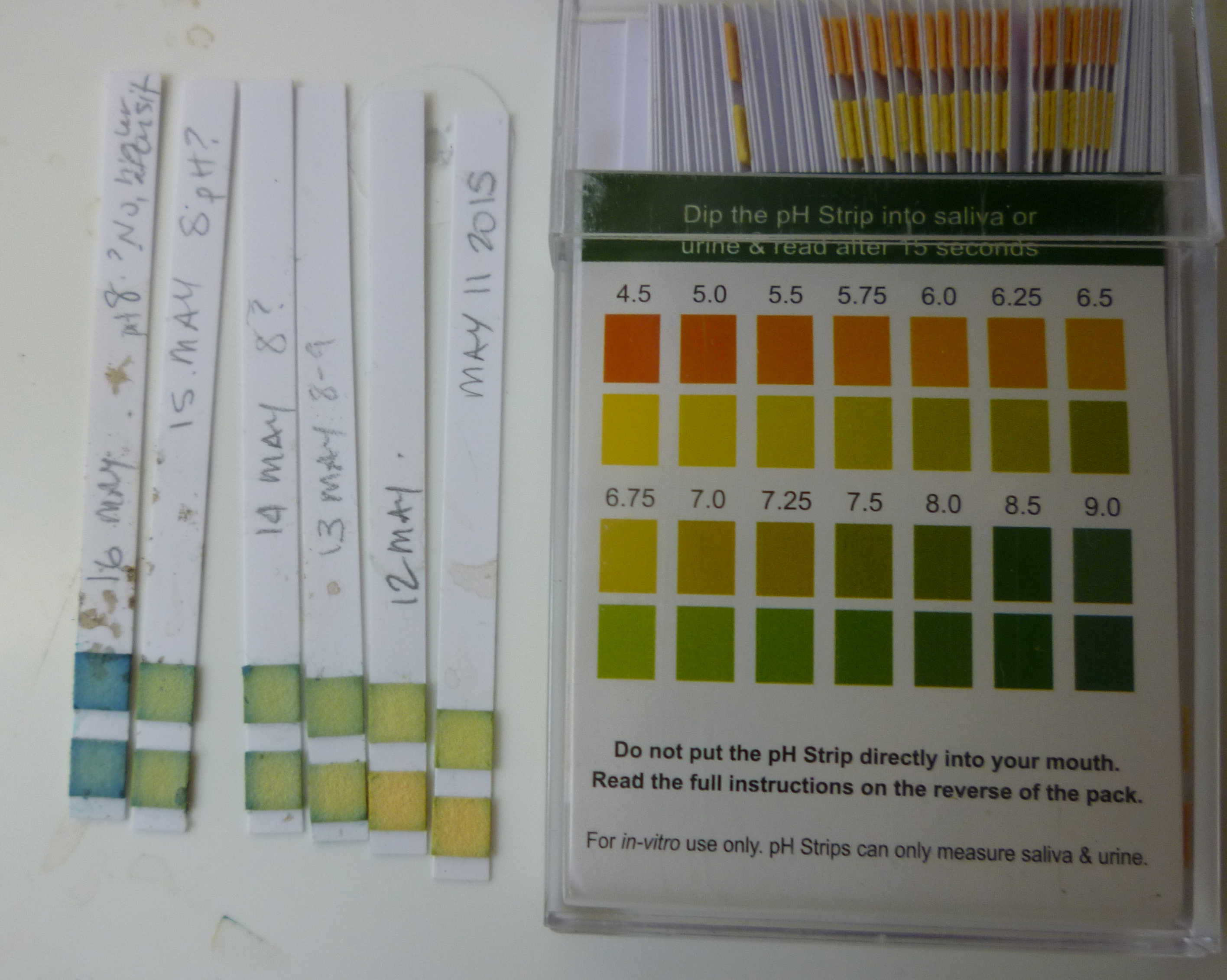 pH papers from vat testing over the week: