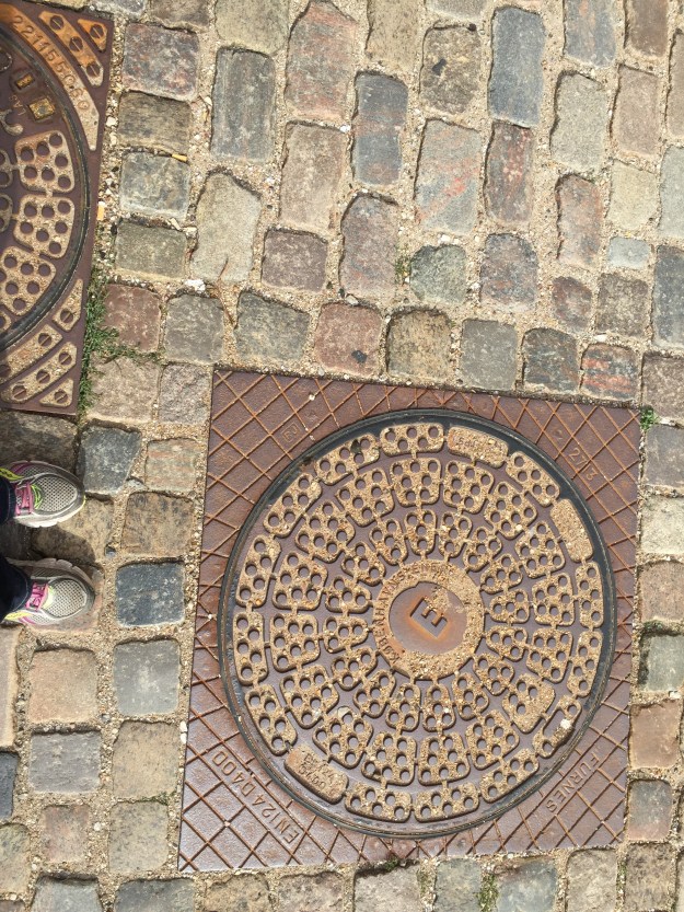 Perhaps fractionally less rubbish now because I’ve wound a few since this one, but still. This warp was wound one thread at a time from two different umbrella swifts over the course of three days. Should I be surprised that I had to hang a chiming array of weights from slack threads? No, I should not.