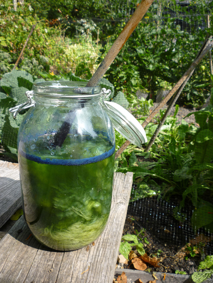 Indigo-dyed handspun cotton singles drying on the rosemary bush by the kitchen door. I miss that bush, and our North Ronaldsay sky-blue doors.